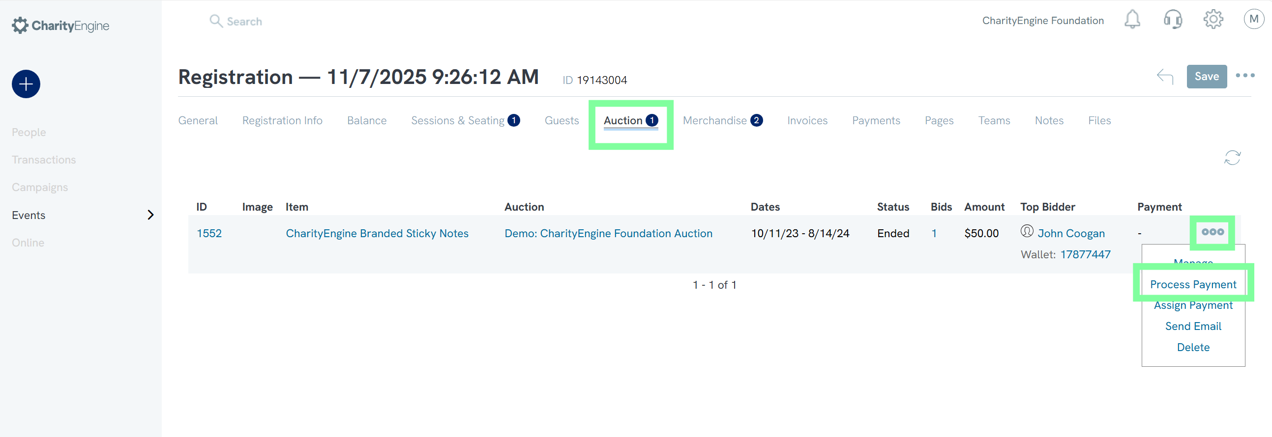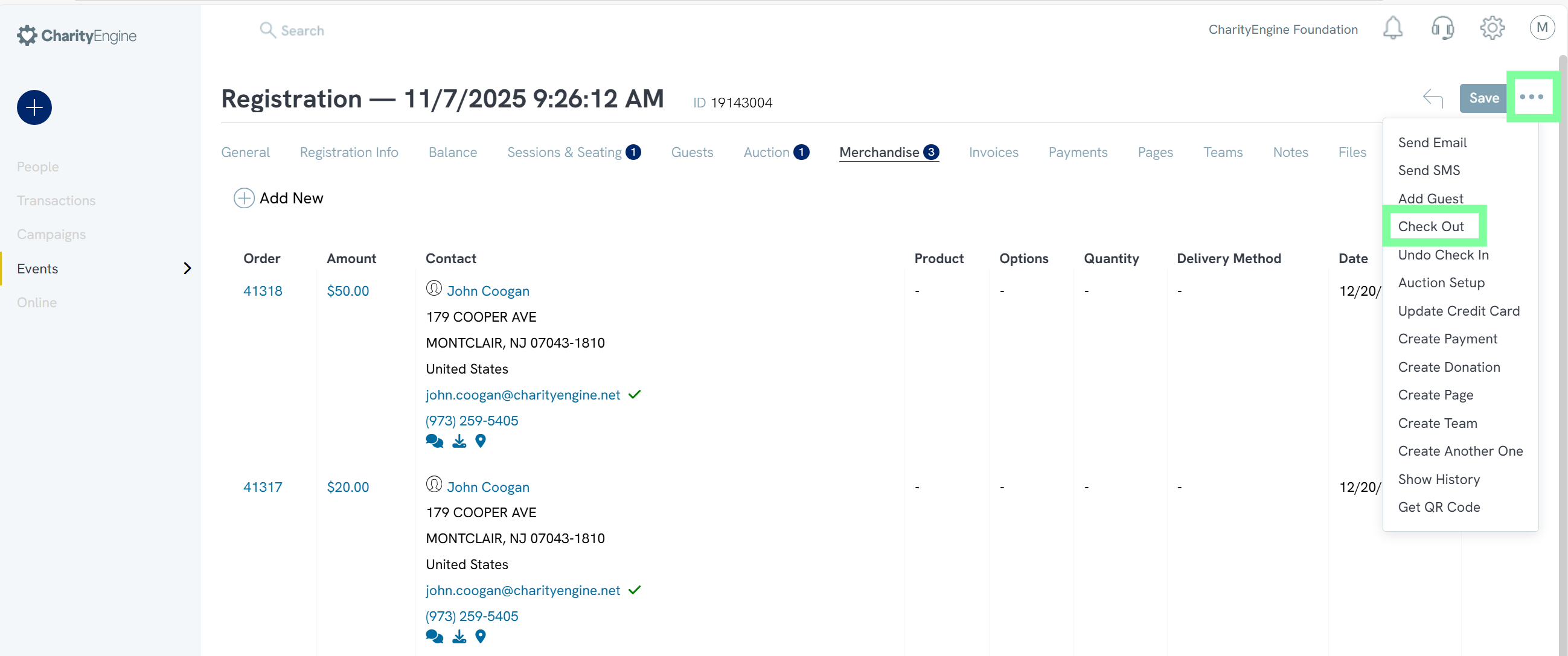 At the end of your event, attendees can be checked out and charged for any auction items or merchandise they purchased.