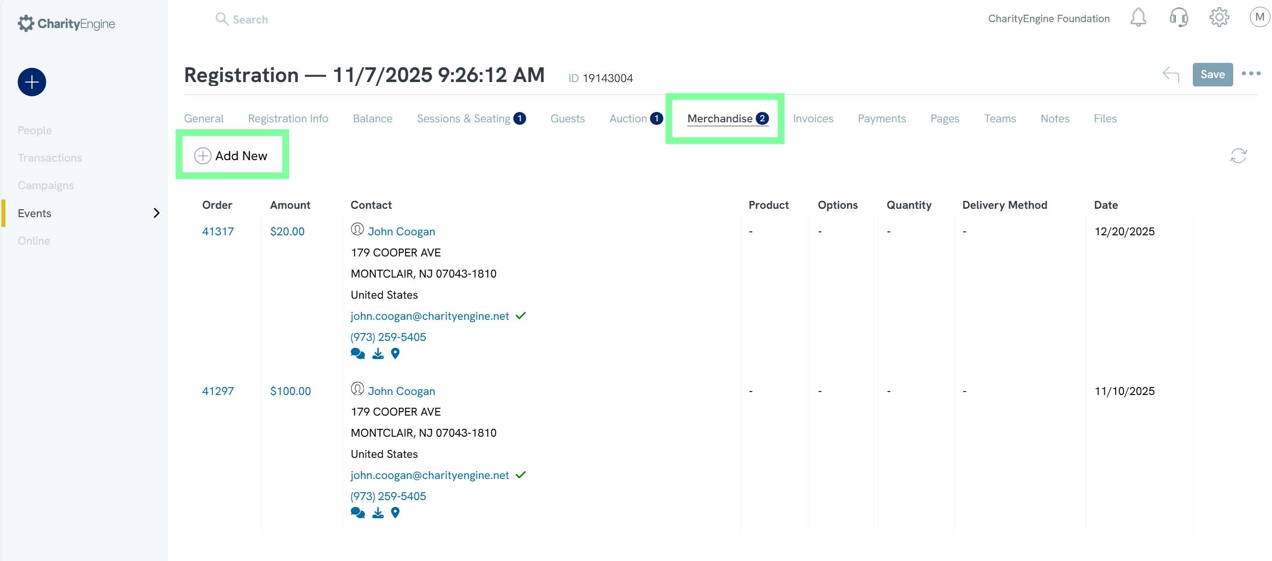 If merchandise inventory is tracked in CharityEngine using the E-commerce module: